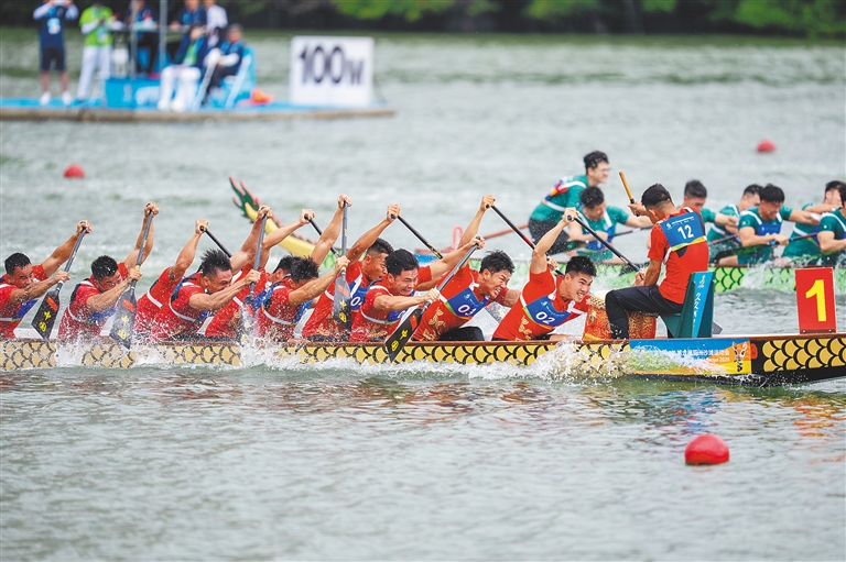 据悉,12人龙舟100米直道赛每队由1名鼓手、1名舵手和10名划手组成。25日,将迎来12人龙舟男子组、女子组200米直道赛决赛。