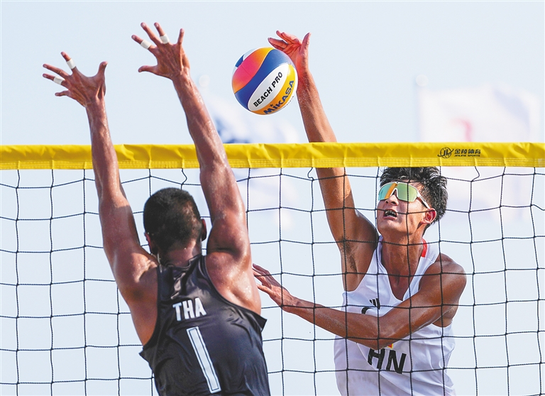 本报三亚4月26日电 (海报集团全媒体中心记者利声富)4月26日下午,第六届亚洲沙滩运动会沙滩排球男子组十六强赛战罢。中国男队两对组合一胜一负:张泰/周朝威苦战三局,以2比1逆转战胜泰国组合,成功晋级八强;王延伟/吴佳欣则以0比2不敌伊朗组合,遗憾止步。