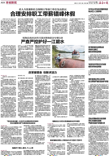 本报讯(海南日报全媒体记者易宗平)4月27日,省人力资源和社会保障厅等部门单位发出《关于合理安排职工带薪错峰休假的倡议书》(以下简称《倡议书》),明确“休息休假不是可有可无的调剂,它和工作同等重要”,希望全省用人单位倡导高效工作、快乐生活、劳逸结合的理念,切实保障职工休息休假权益。
